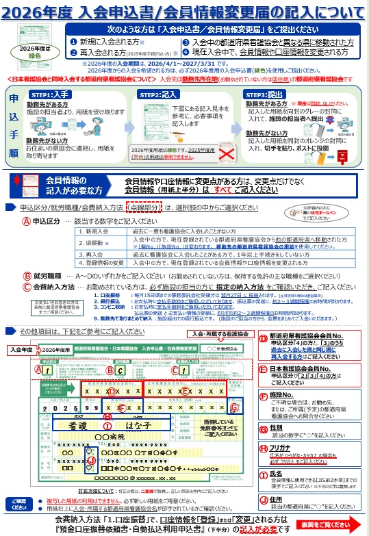 下記の「2026年度入会申込書/会員情報変更届の記入について」を参照し、手続きを進めてください。