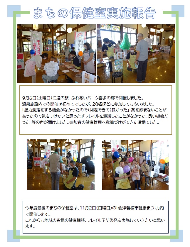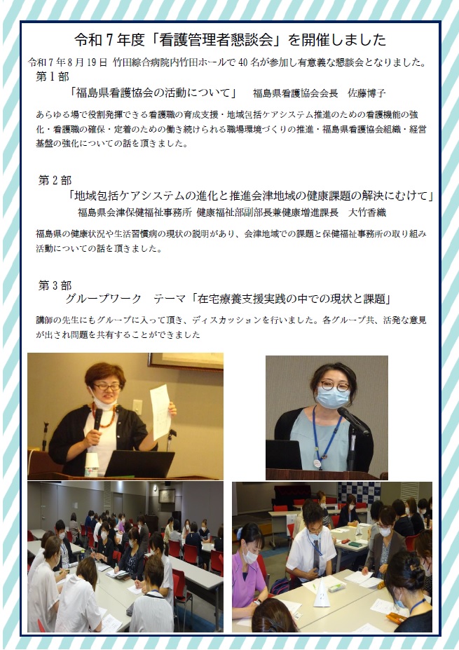 2025年9月19日 協会事業会津支部のページを更新(管理者懇談会、まちの保健室の実施報告)