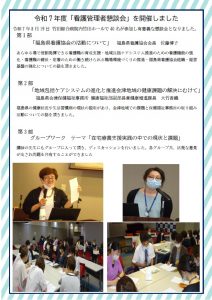 令和7年度の看護管理者懇談会を下記により開催いたします。