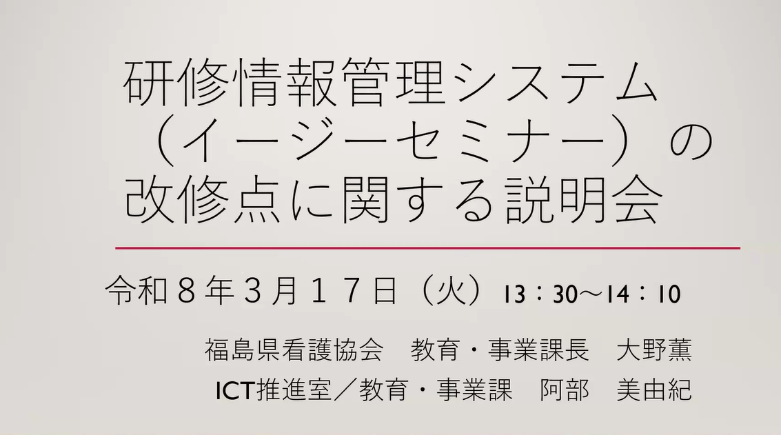 【研修情報管理システム(イージーセミナー)の改修点に関する説明会】2026年3月17日(火)開催