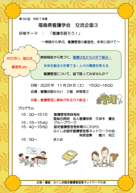 参加資格: 福島県内に勤務もしくは居住する看護職または看護学生